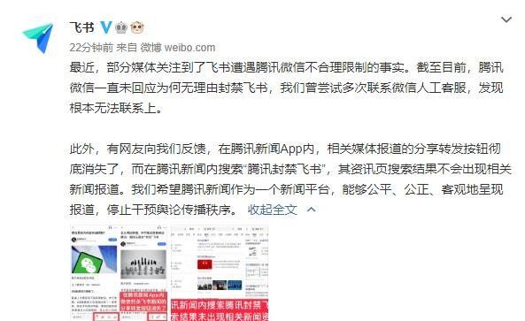 飛書(shū)再發(fā)文:曾多次聯(lián)系微信人工客服 但根本聯(lián)系不上