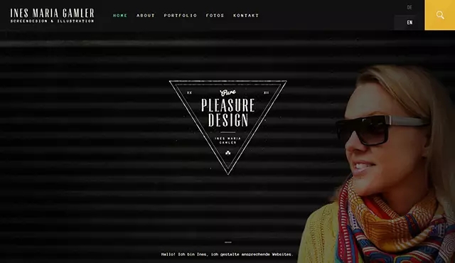 Ines Maria Gamler網(wǎng)站中展示的女性正側(cè)著臉,雙眼注視網(wǎng)站中間的文字。打開網(wǎng)站時(shí),大多數(shù)人會首先關(guān)注人物的臉部,并進(jìn)一步受到人物視線的引導(dǎo)。