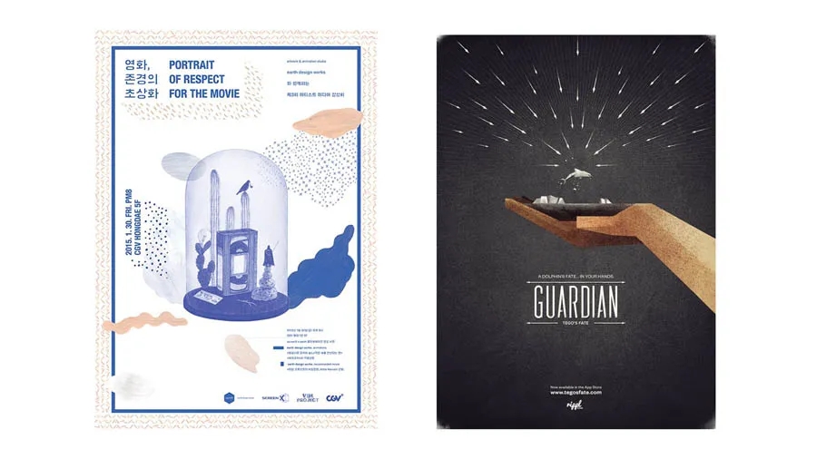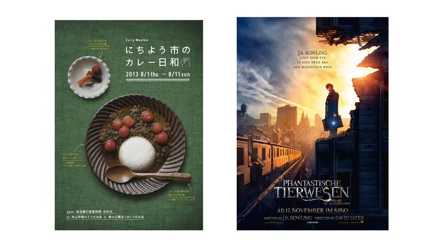 左邊的海報(bào)采用了矩形構(gòu)圖,右邊的海報(bào)采用了二分構(gòu)圖,但是文案都是找到了一條明確清晰的對(duì)齊線,這樣讓版面產(chǎn)生了秩序美。