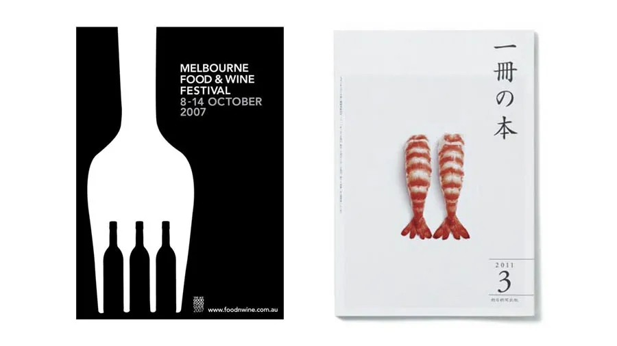 左邊在留白的同時(shí),利用了負(fù)空間巧妙的將海報(bào)的主題“美食”和“美酒”結(jié)合起來(lái)。