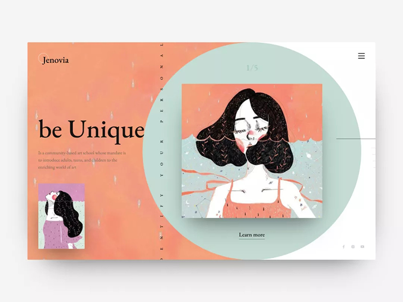 通常而言,你需要將插畫當作重要的視覺焦點來使用,讓它周圍有足夠多的留白,這樣能夠保持極簡設計應有的呼吸感。這個時候,經典的排版布局方式就可以發(fā)揮極大的作用,左右布局、上下布局、中心式布局等等,不用復雜的花樣,就可以制造出讓人驚喜的效果。當然,記得控制好元素和整體布局之間的空間比例。