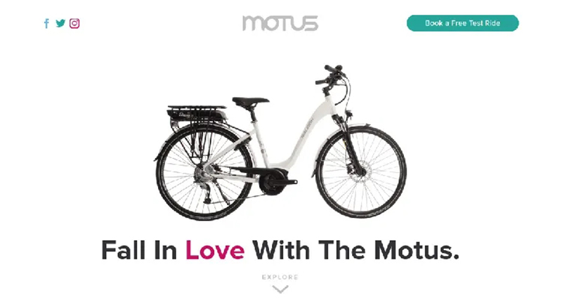 Motus 這個網(wǎng)站首頁主要是用來展示自行車的,白色背景+產品+大標題的設計模式貫穿整個設計,其中提亮的彩色文本在不同的產品中各不相同,但是這種“變化”也是整體一致性的體現(xiàn)。整個設計從風格到一致性的把控上,都貼合極簡主義的精神。保持設計的一致,是最基本的設計規(guī)則。