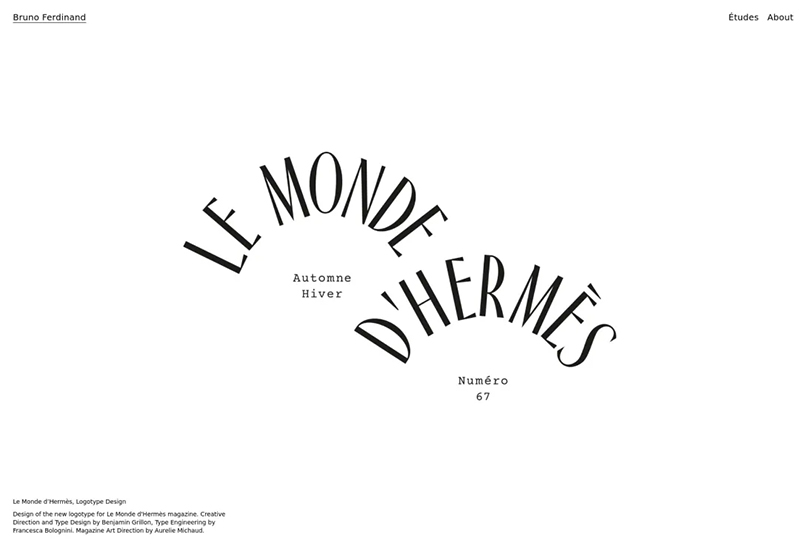 Bruno Ferdinand 是一位在字體設計上有著突出技巧的設計師,他的作品集網(wǎng)站中不僅能夠體現(xiàn)他在字體排版上的獨特想法,而且還表現(xiàn)出他近乎強迫癥的時尚口味傾向。整個網(wǎng)站的設計簡約,美觀,質樸也令人難忘。
