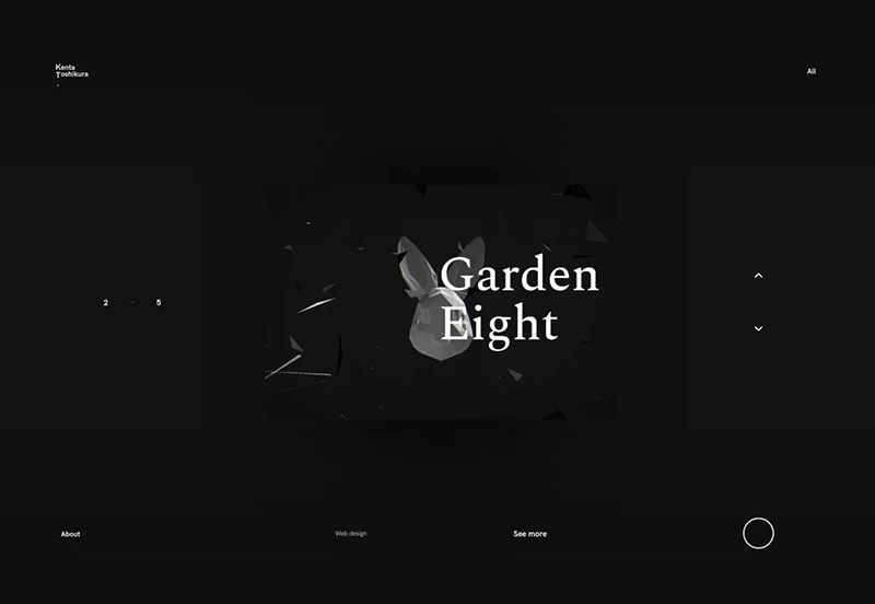Kenta Toshikura 的網(wǎng)站是最典型的極簡主義設計風格,網(wǎng)站在功能上明顯是以展示為主,在視覺設計和排版上沒有采用一些很獨特的技巧,不過借助3D效果倒是意外的讓人覺得很有趣。
