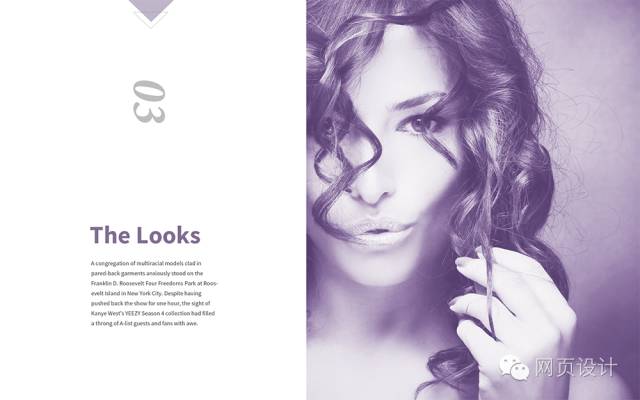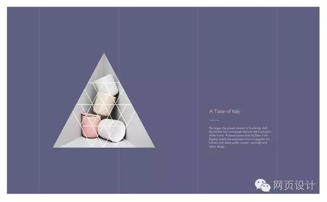 由于三角其實(shí)也是矩形的一半,因此用三角形來(lái)引申出矩形的意向,經(jīng)過(guò)巧妙地構(gòu)圖安排,同樣可以發(fā)揮矩形布局的效果。