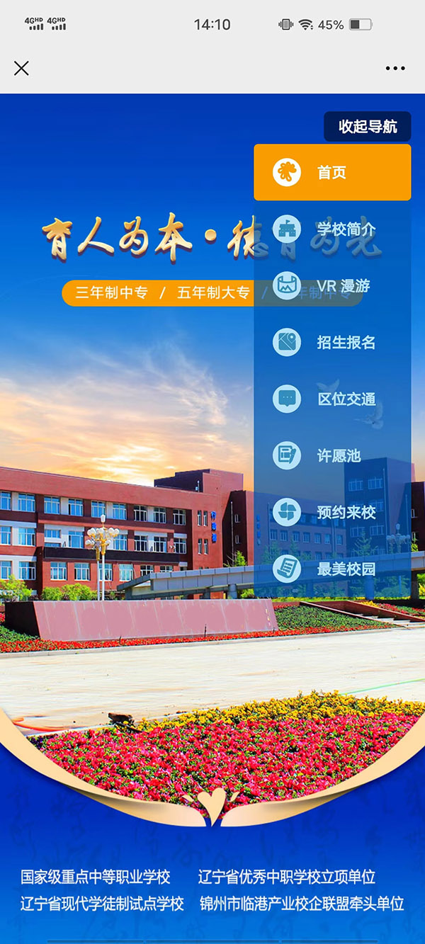 報(bào)名軟件功能分為學(xué)校簡(jiǎn)介、VR學(xué)校全景云游導(dǎo)視、招生報(bào)名、一鍵導(dǎo)航區(qū)位交通、許愿池、預(yù)約來(lái)校、最美校園展示幾個(gè)功能版塊。